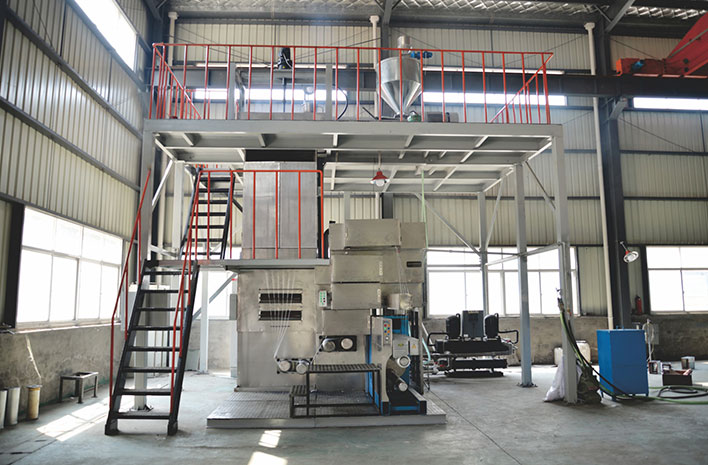 本設備主要采用溶劑溶解, 干噴濕紡法紡制芳綸1414纖維。 該纖維主要用于制作防彈衣,防彈頭盔,防刺防割服等等。生產工藝流程:設備包括原料溶解裝置, 雙螺桿擠出機,脫泡裝置,過濾器,漿液分配管道,計量泵及其傳動裝置,紡絲組件,水浴系統,水洗堿洗牽伸機, 水洗機,烘干機,油輪上油裝置,熱定型機和卷繞機組成。
